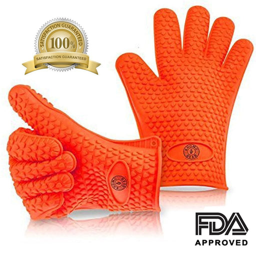 Pair Of Heat Resistant Gloves Oven / Kitchen / BBQ Grill - Orange