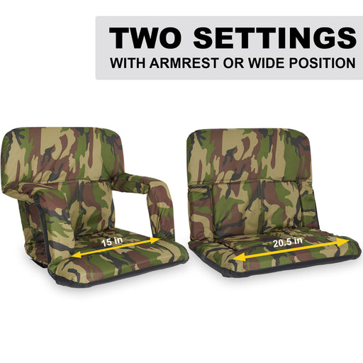 Stadium Bleacher Seat Bench Chair with Padded Reclining Cushion - Camo