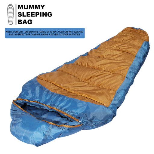 Sleeping Bag For Hiking Camping & Outdoor Activities Compression Bag Included Mummy - Blue