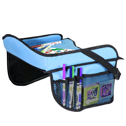 Toddler Car Seat Travel Tray with Storage Pocket Organizer - Blue