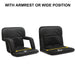2 Width Positions: The sports chair may be set with armrests up fitting a width of 15”. Set the chair with no armrests to reach a maximum width of 20.5”.